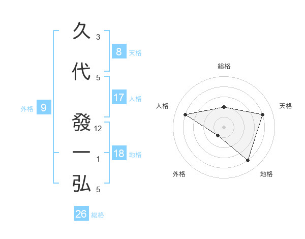 久代 發一弘さんを姓名の画数から五運を鑑定