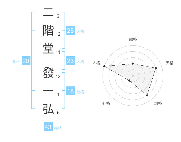 二階堂 發一弘さんを姓名の画数から五運を鑑定