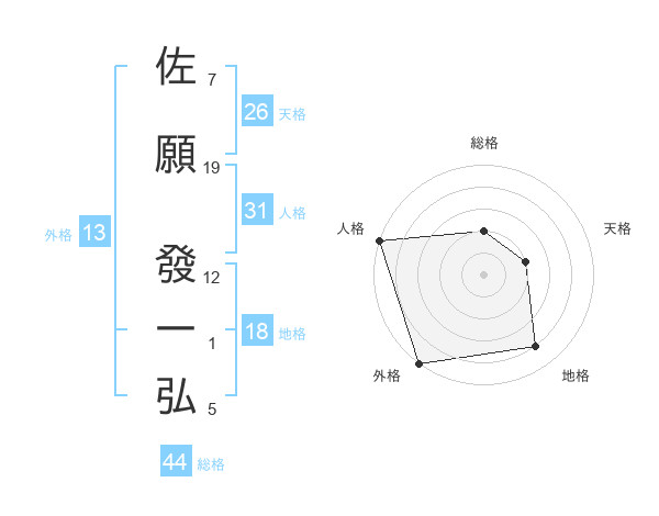 佐願 發一弘さんを姓名の画数から五運を鑑定