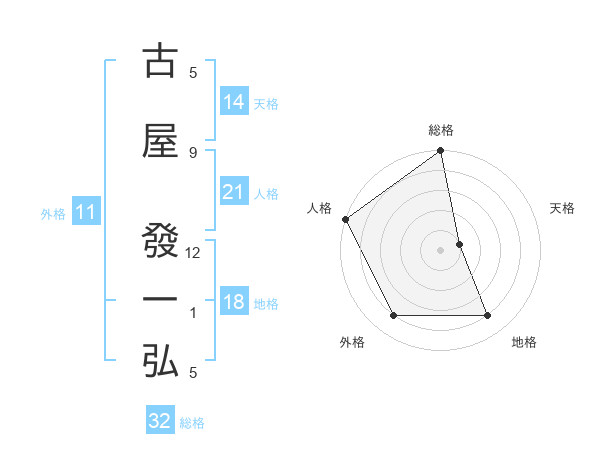 古屋 發一弘さんを姓名の画数から五運を鑑定