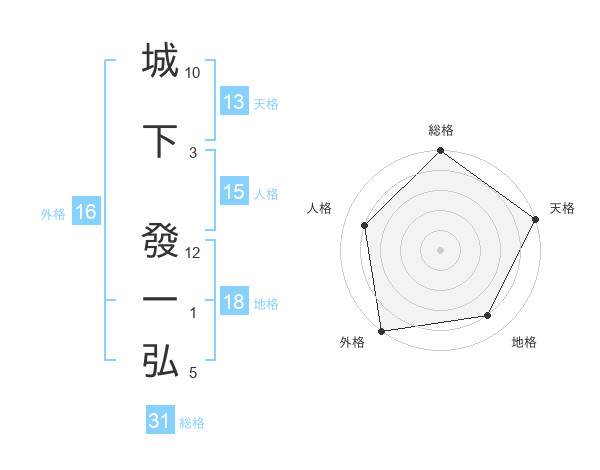 城下 發一弘さんを姓名の画数から五運を鑑定