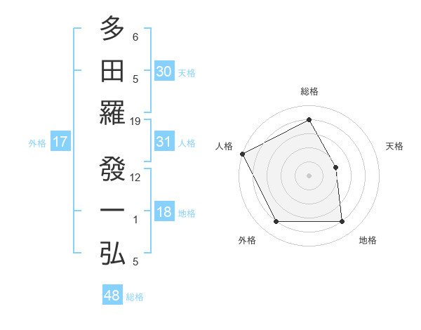 多田羅 發一弘さんを姓名の画数から五運を鑑定