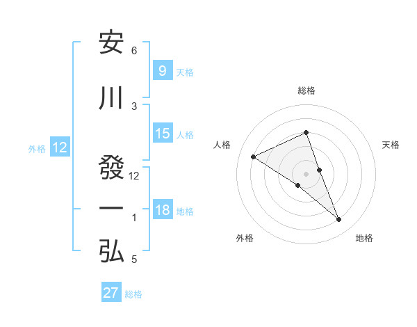 安川 發一弘さんを姓名の画数から五運を鑑定