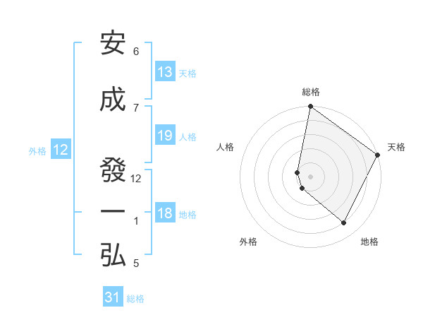 安成 發一弘さんを姓名の画数から五運を鑑定