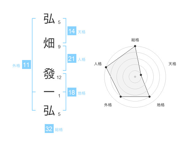 弘畑 發一弘さんを姓名の画数から五運を鑑定
