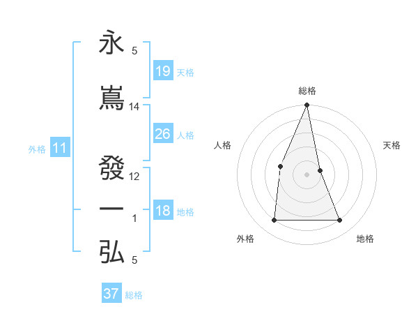 永嶌 發一弘さんを姓名の画数から五運を鑑定