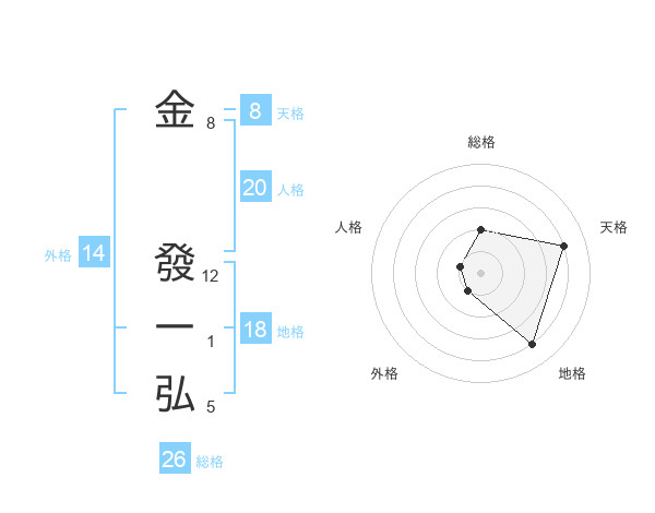 金 發一弘さんの天格は8画の4点!