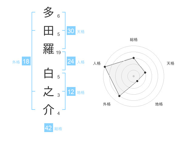 多田羅 白之介さんの総格は42画の3点!