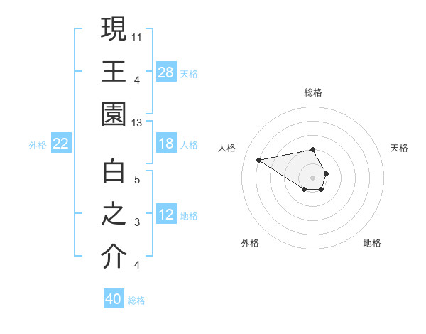 現王園 白之介さんを姓名の画数から五運を鑑定