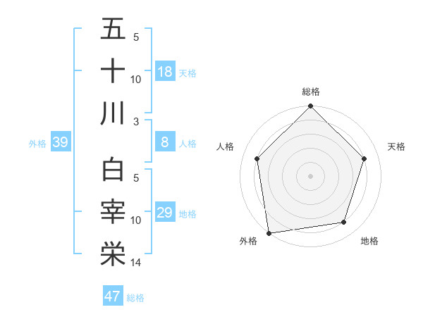 五十川 白宰栄さんを姓名の画数から五運を鑑定