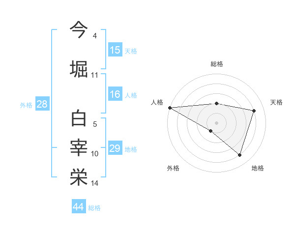 今堀 白宰栄さんの総格は44画の2点!