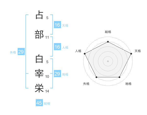 占部 白宰栄さんを姓名の画数から五運を鑑定