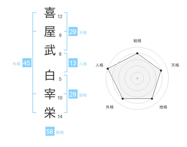 占い結果は姓名判断である以上、良い場合も悪い場合もありますが、決してお名前を誹謗中傷するものでなく、画数の自動計算によって得られたものです。また、本サイトの検索によって得られた鑑定結果で、第三者を誹謗中傷したり名誉を棄損するような行為を禁じます。