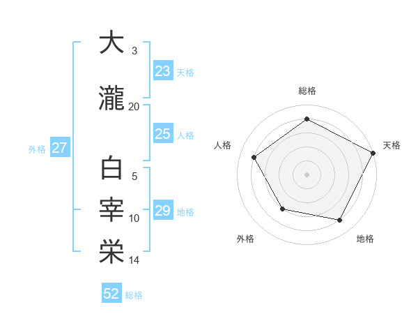 大瀧 白宰栄さんを姓名の画数から五運を鑑定