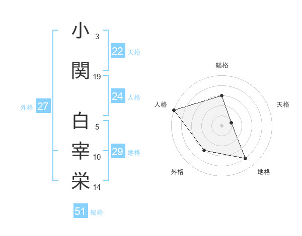 小関 白宰栄さんを姓名の画数から五運を鑑定