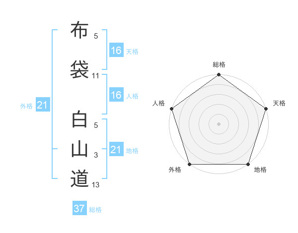 布袋 白山道さんの総格は37画の5点!