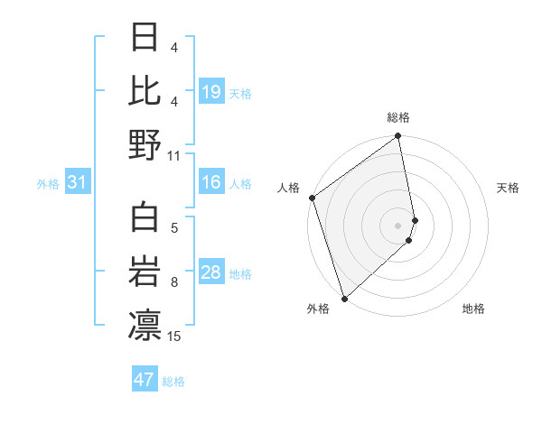 日比野 白岩凛さんを姓名の画数から五運を鑑定