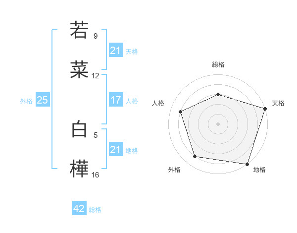 若菜 白樺さんを姓名の画数から五運を鑑定