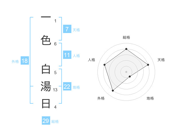 一色 白湯日さんを姓名の画数から五運を鑑定