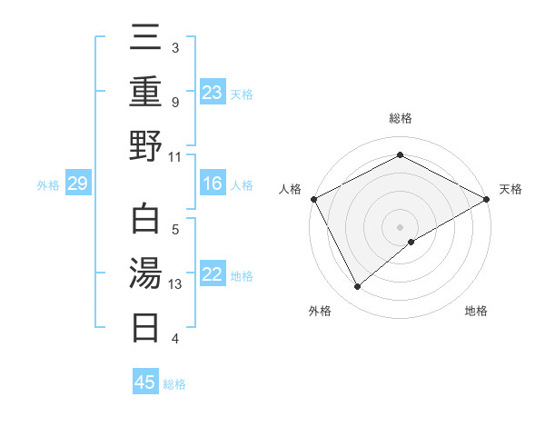 三重野 白湯日さんを姓名の画数から五運を鑑定