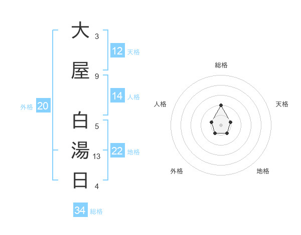 大屋 白湯日さんを姓名の画数から五運を鑑定
