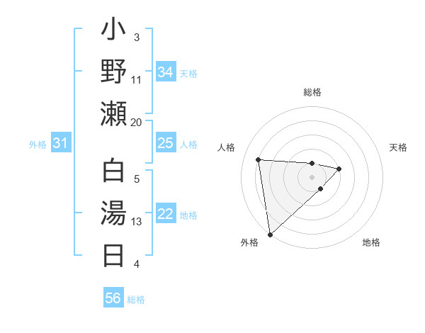小野瀬 白湯日さんを姓名の画数から五運を鑑定