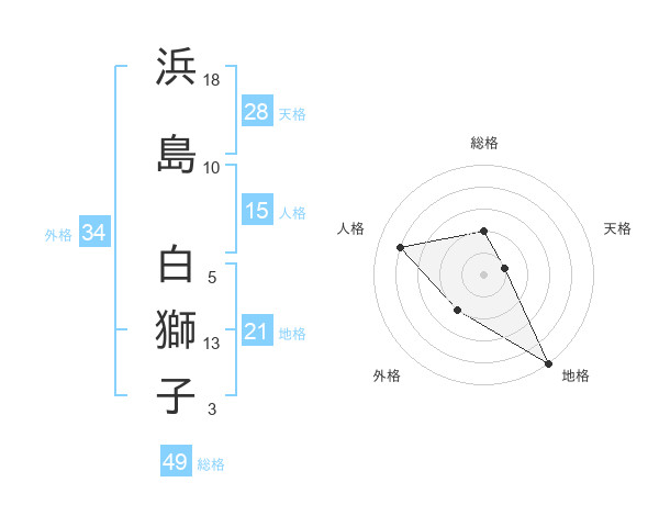 浜島 白獅子さんを姓名の画数から五運を鑑定