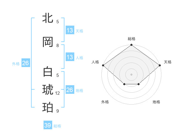 北岡 白琥珀さんを姓名の画数から五運を鑑定
