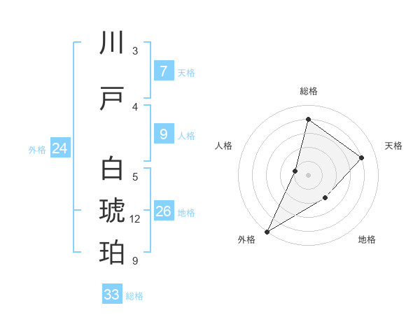 川戸 白琥珀さんの総格は33画の4点!
