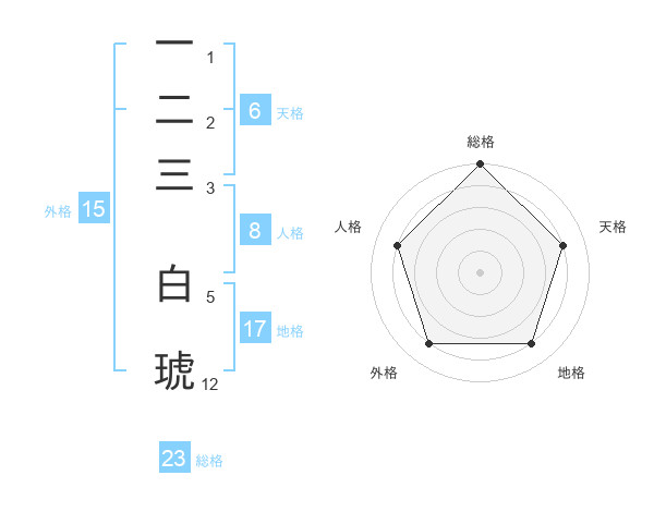 一二三 白琥さんを姓名の画数から五運を鑑定