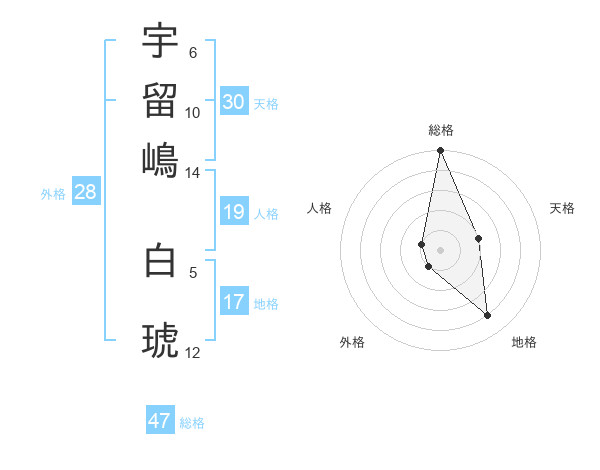 宇留嶋 白琥さんを姓名の画数から五運を鑑定