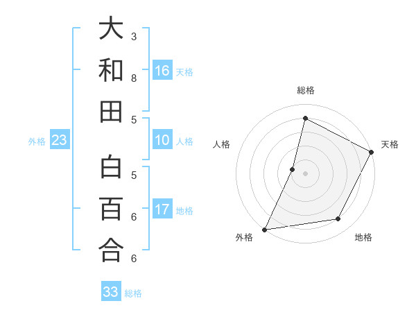 大和田 白百合さんを姓名の画数から五運を鑑定