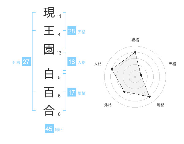 現王園 白百合さんを姓名の画数から五運を鑑定