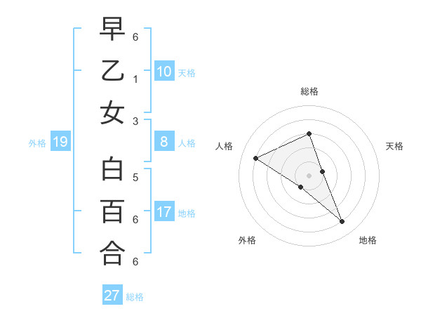 早乙女 白百合さんを姓名の画数から五運を鑑定