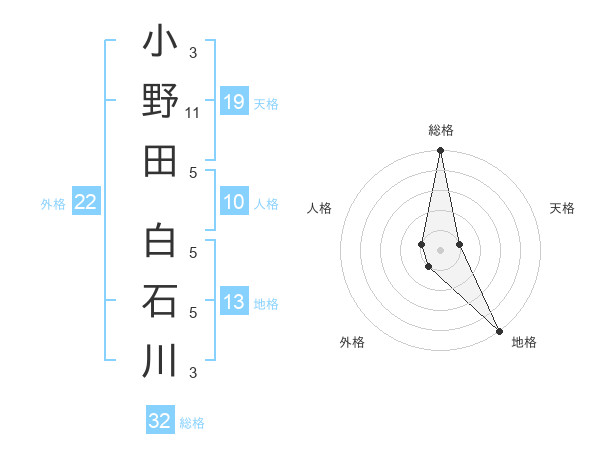 小野田 白石川さんの総格は32画の5点!