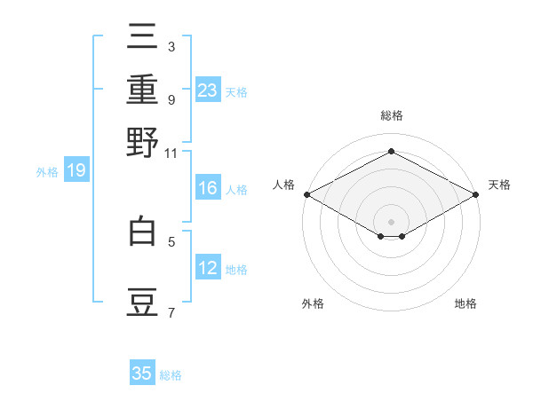 三重野 白豆さんを姓名の画数から五運を鑑定