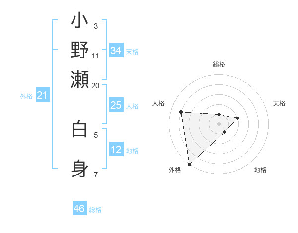 小野瀬 白身さんを姓名の画数から五運を鑑定