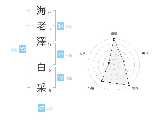 海老澤 白采さんを姓名の画数から五運を鑑定