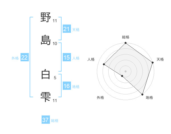 野島 白雫さんの総格は37画の5点!