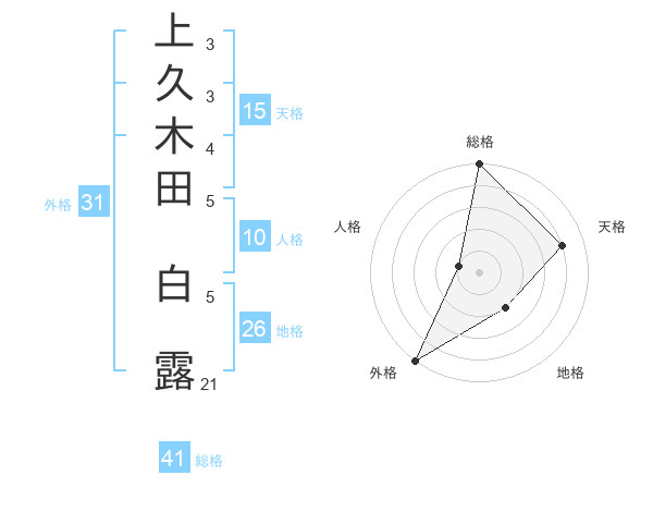 上久木田 白露さんを姓名の画数から五運を鑑定