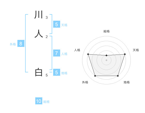 川人 白さんの天格は5画の4点!