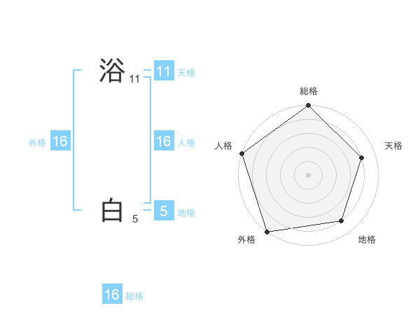 浴 白さんの外格は16画の5点!