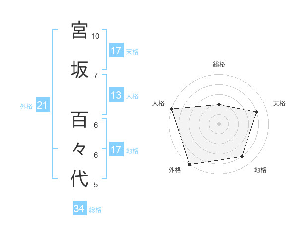 宮坂 百々代さんを姓名の画数から五運を鑑定