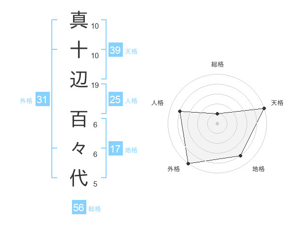真十辺 百々代さんの外格は31画の5点!