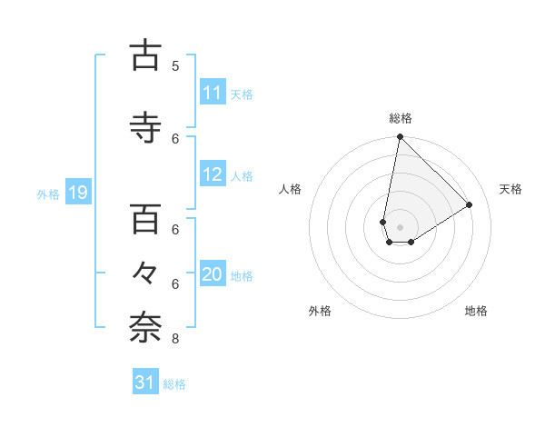 古寺 百々奈さんを姓名の画数から五運を鑑定