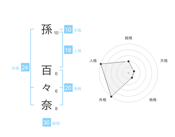 孫 百々奈さんの地格は20画の1点!