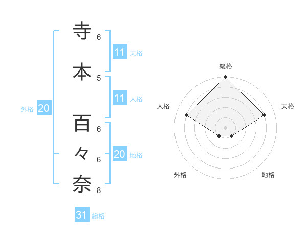 寺本 百々奈さんを姓名の画数から五運を鑑定