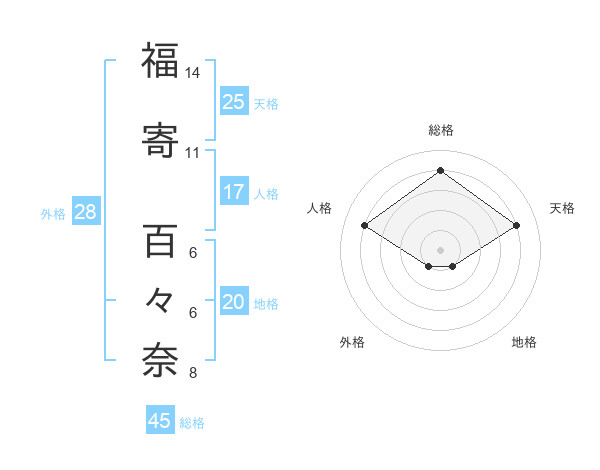 福寄 百々奈さんの天格は25画の4点!