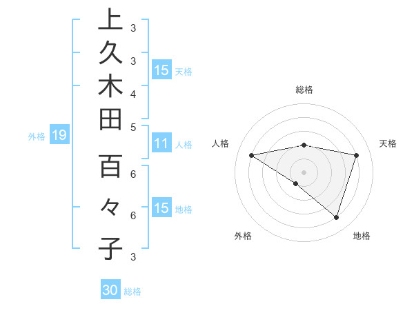 上久木田 百々子さんを姓名の画数から五運を鑑定