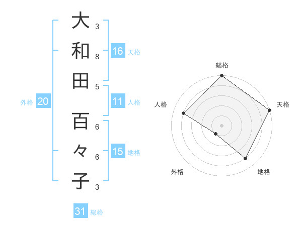 大和田 百々子さんを姓名の画数から五運を鑑定